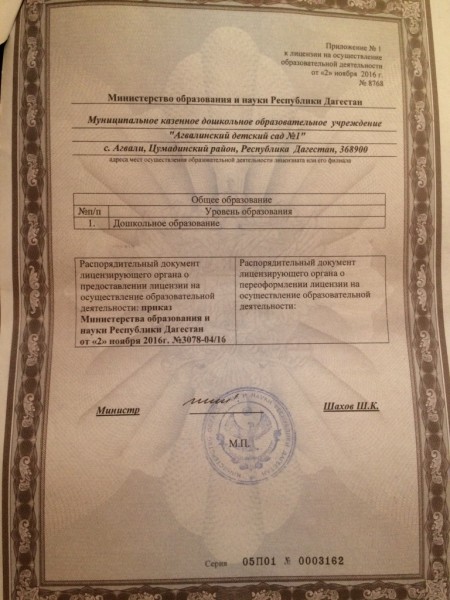 | Сокращенное наименование образовательной организации* | МКДОУ "Агвалинский детский сад №1" |